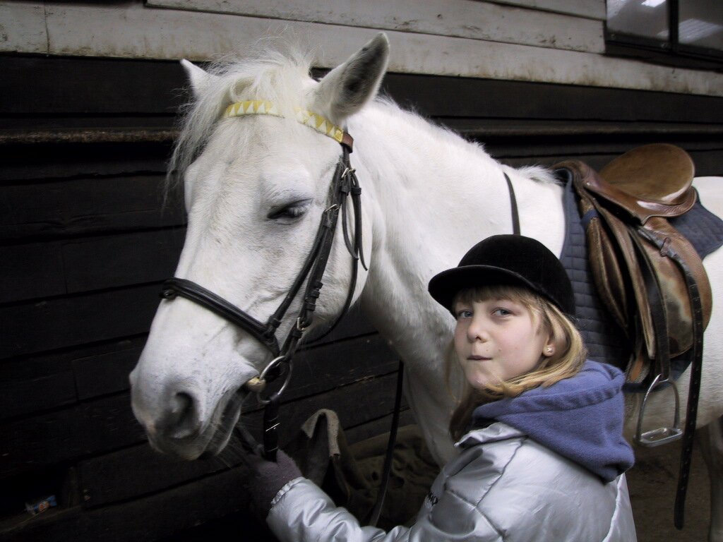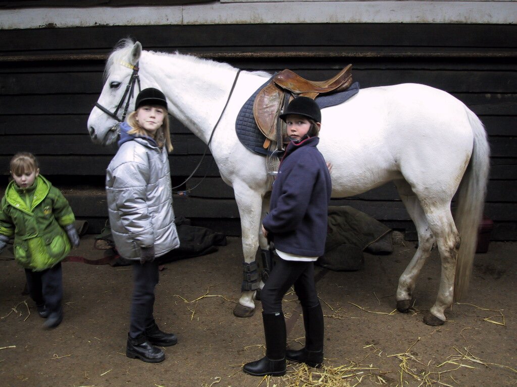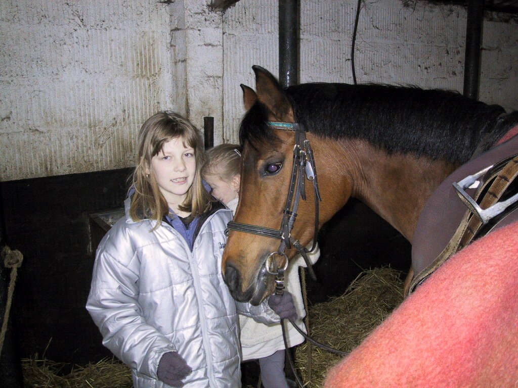 17-03-2001 Ellis en Cynthia eertse keer paardrijden