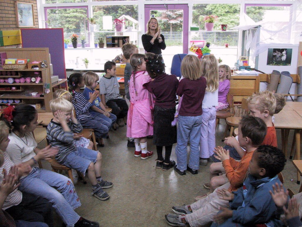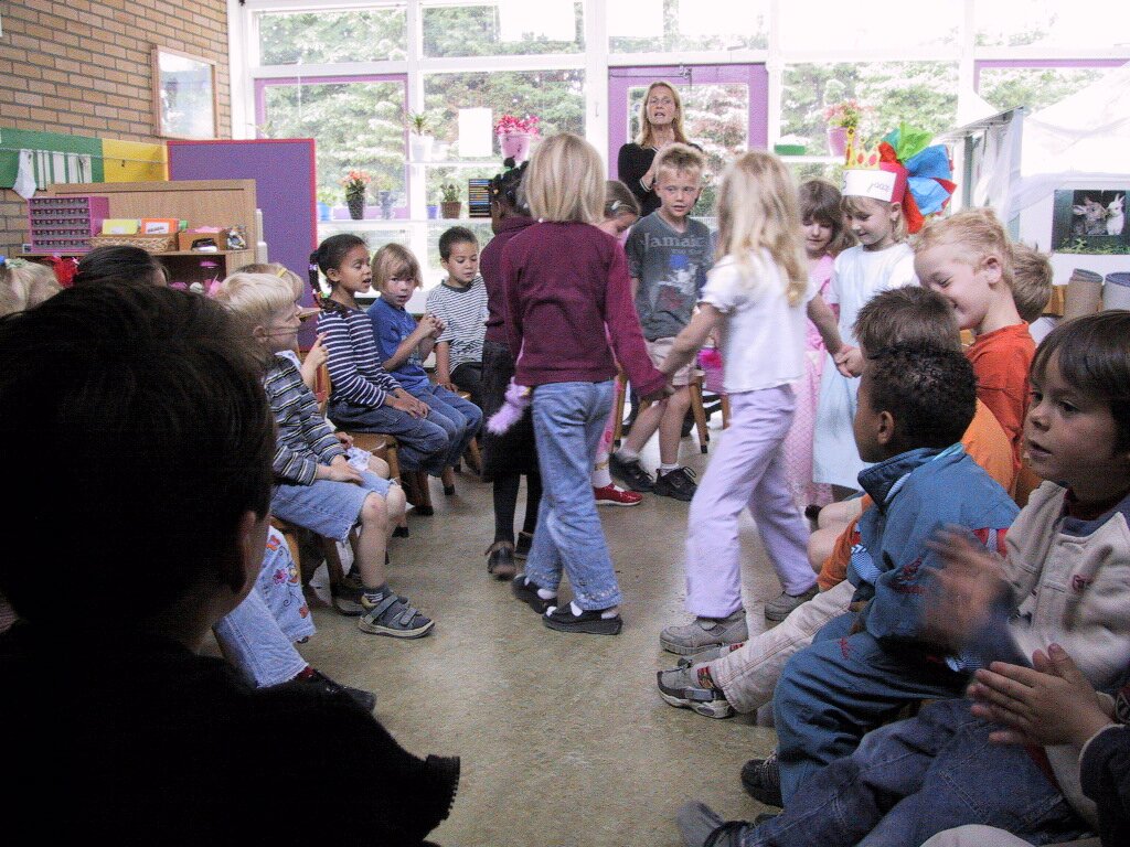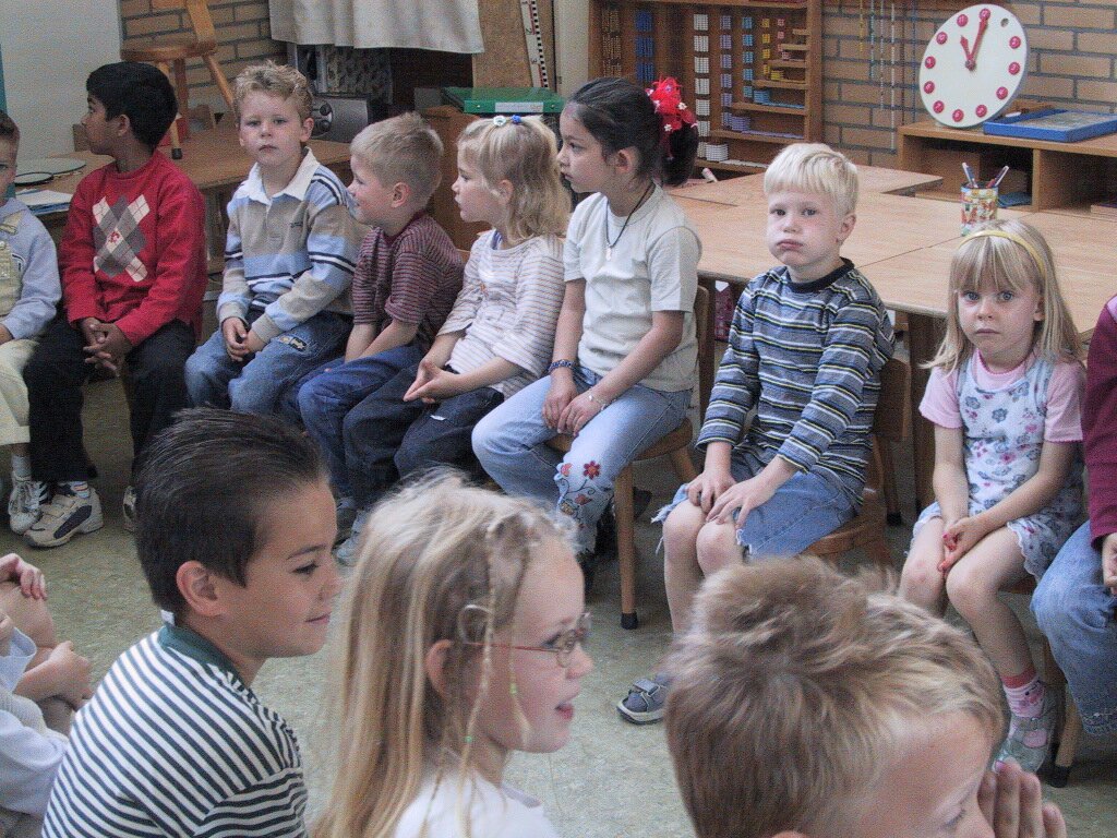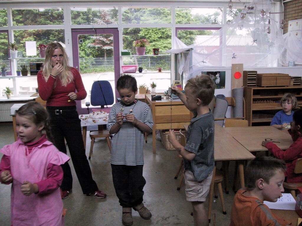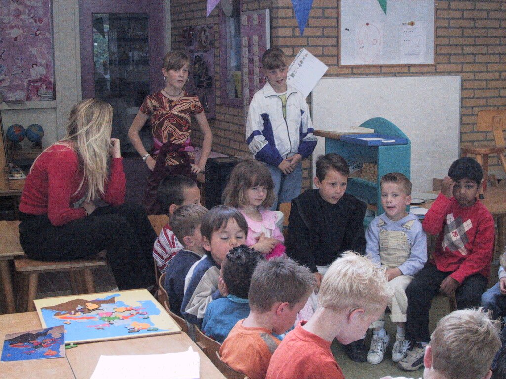 14-06-2002 Verjaardag Mariska 6 jaar, uitdelen op school